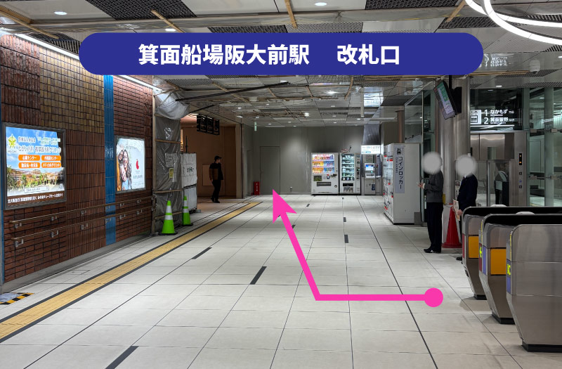① 箕面船場阪大前駅の改札を出て右
