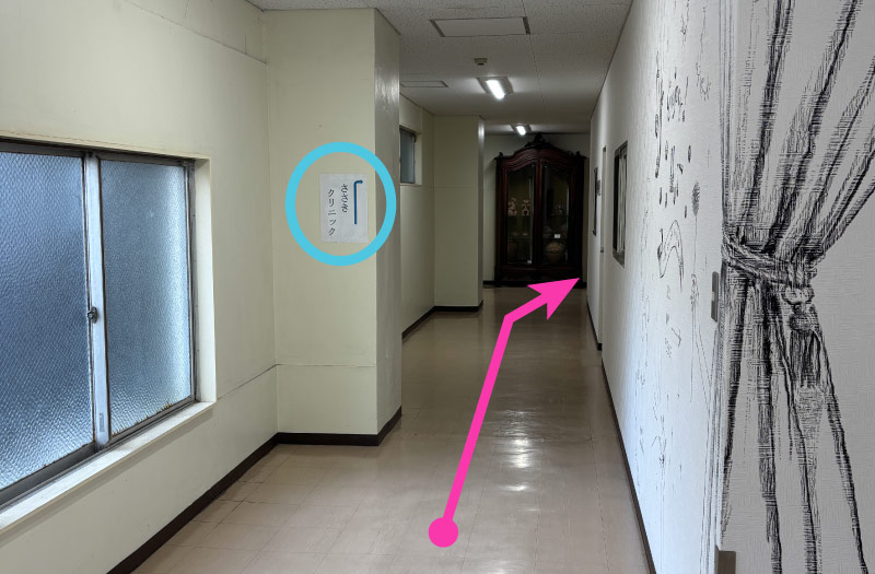 通路を道なりに進みます。(クリニックの張り紙があります)